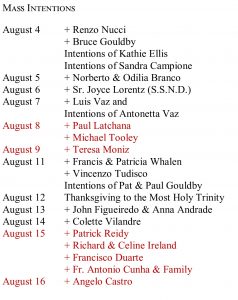 Mass Intentions August 4 – 16