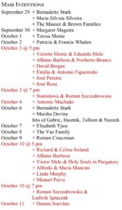 Mass Intentions September 29 – October 11